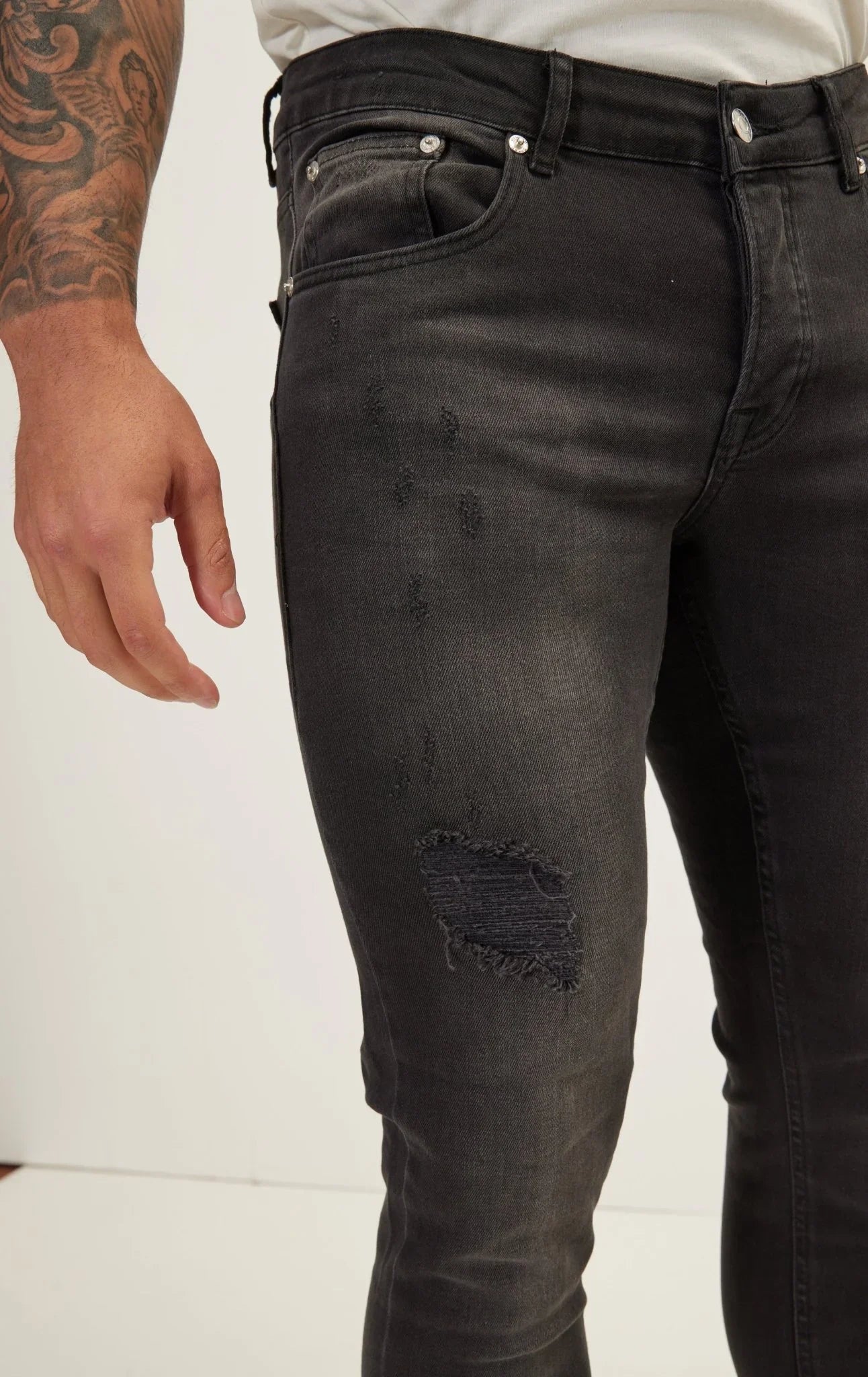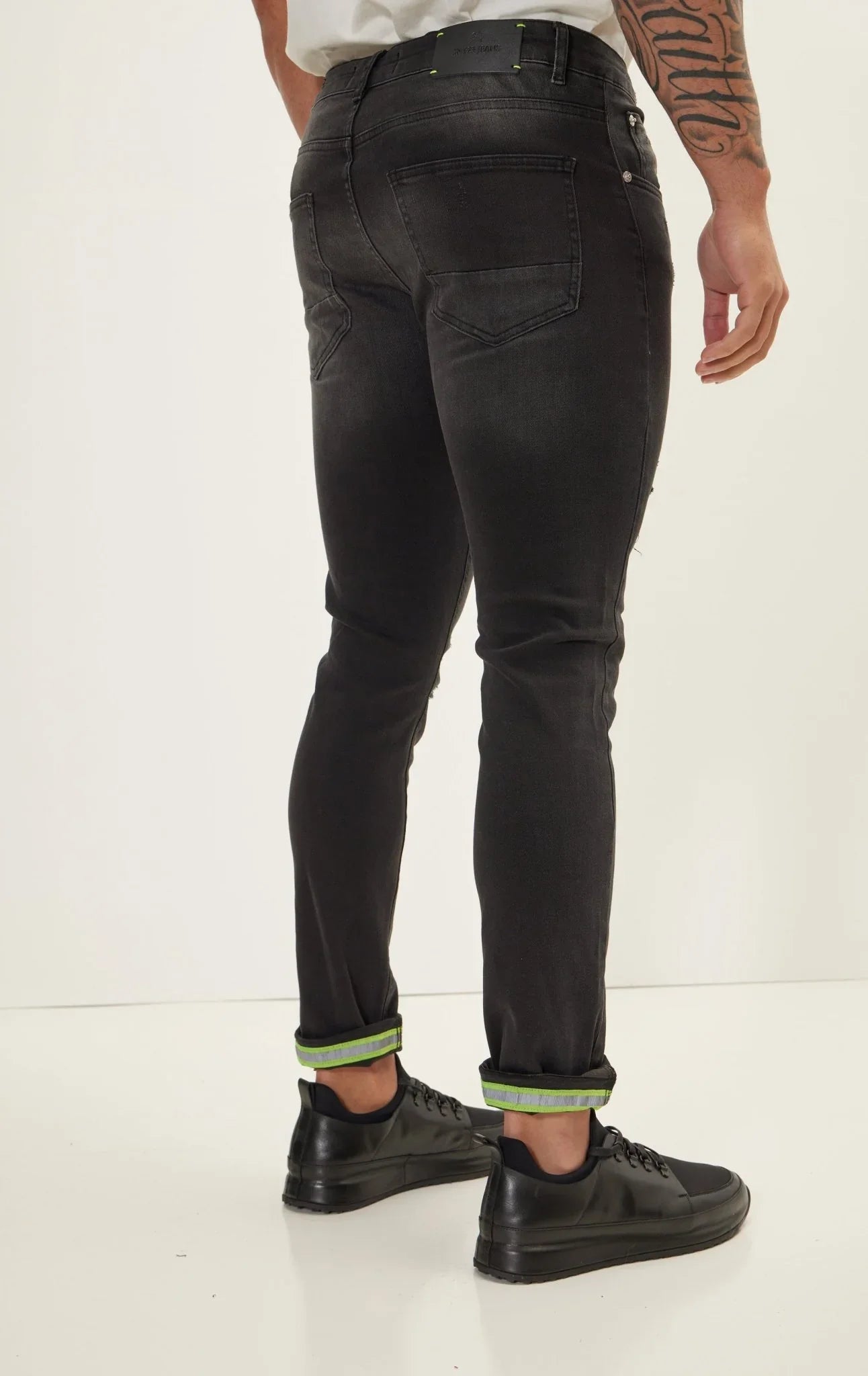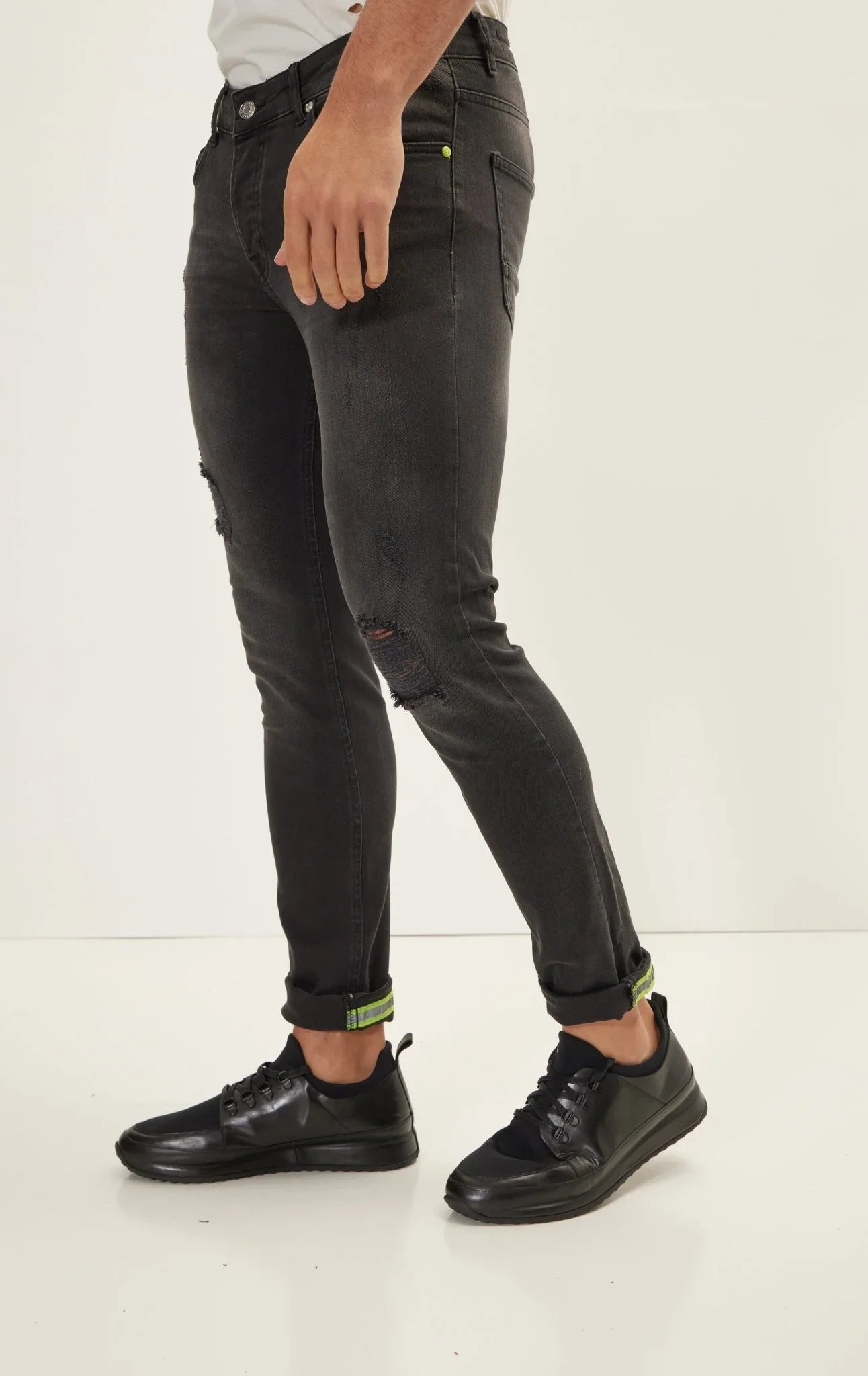 N° 1599 НЕОНОВЫЕ ДЖИНСОВЫЕ ОТРАЖАТЕЛИ СКИННИ С ЗАКЛЕПКАМИ - ТЕМНО-СЕРЫЙ