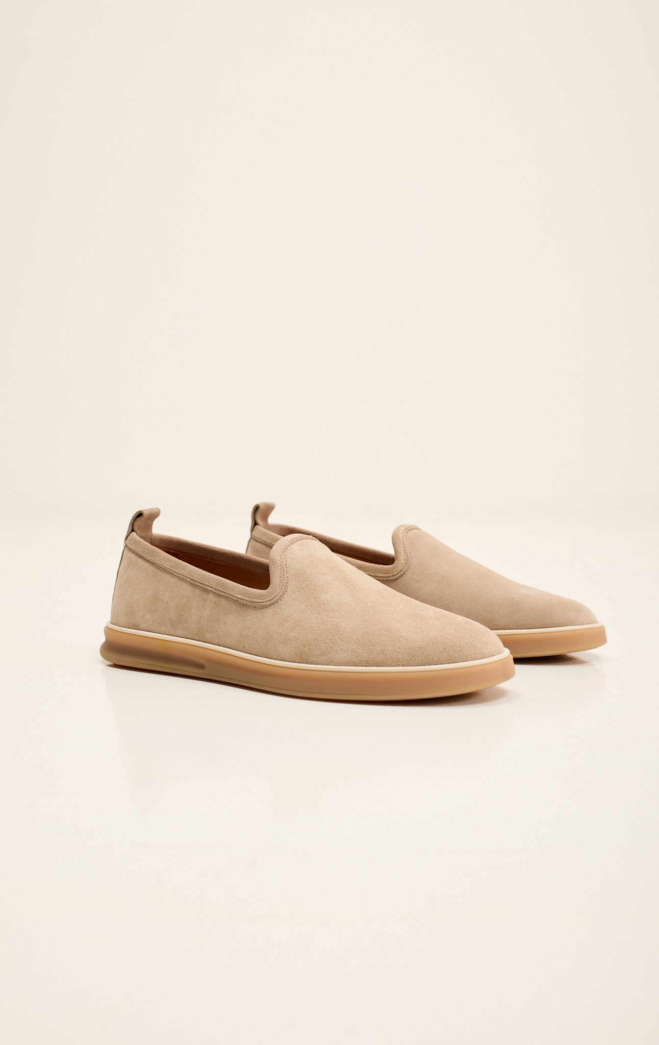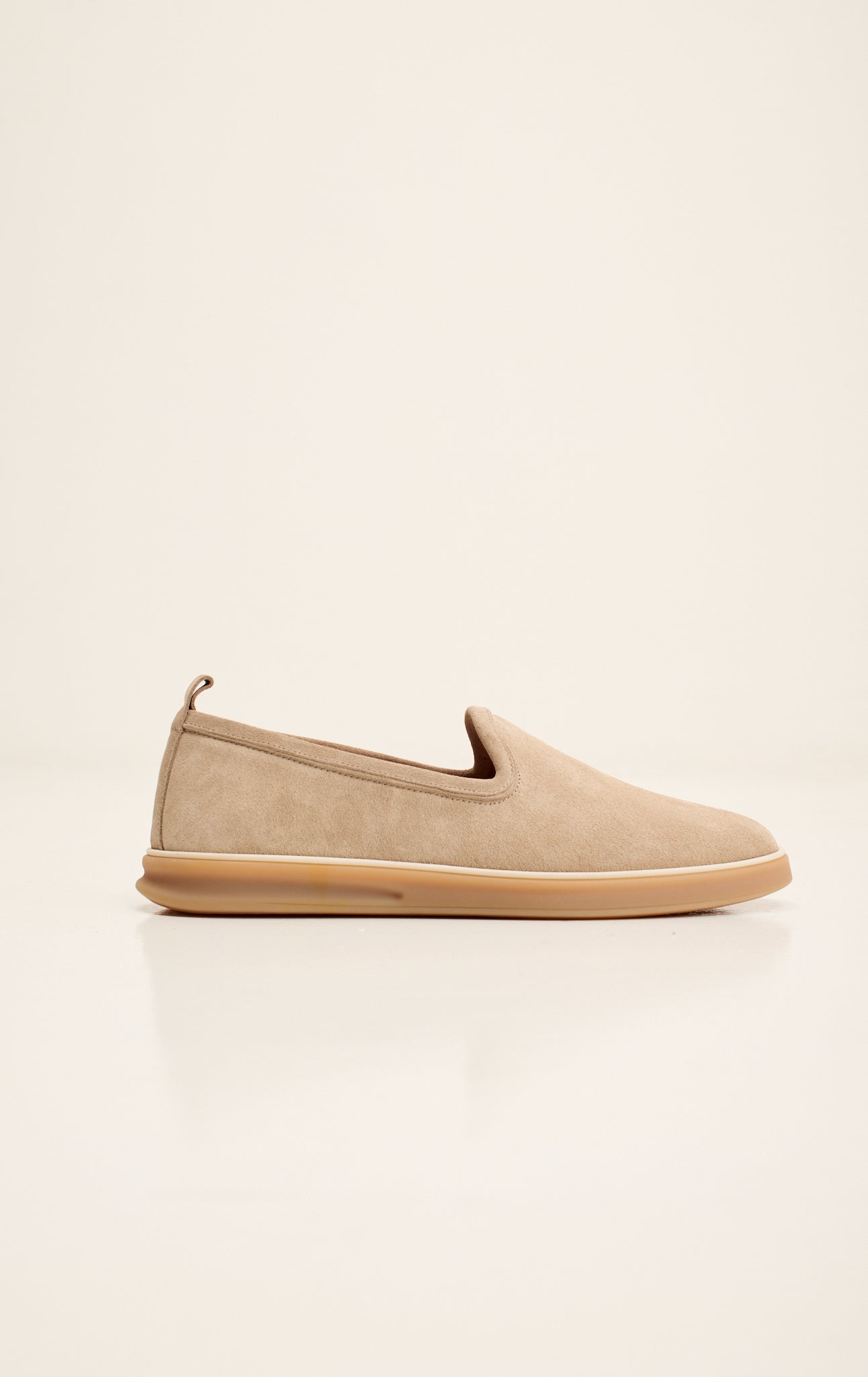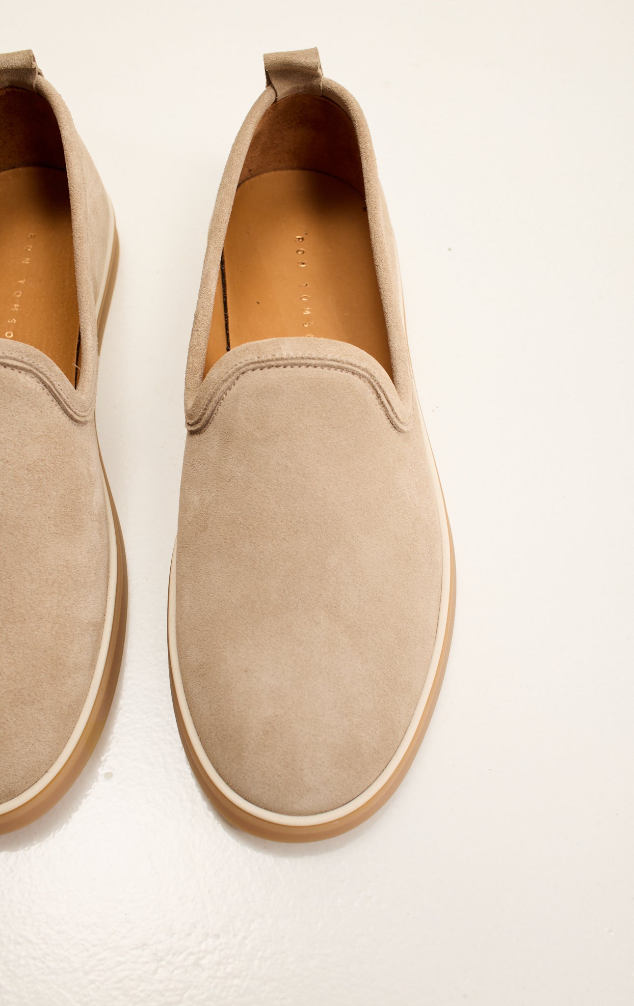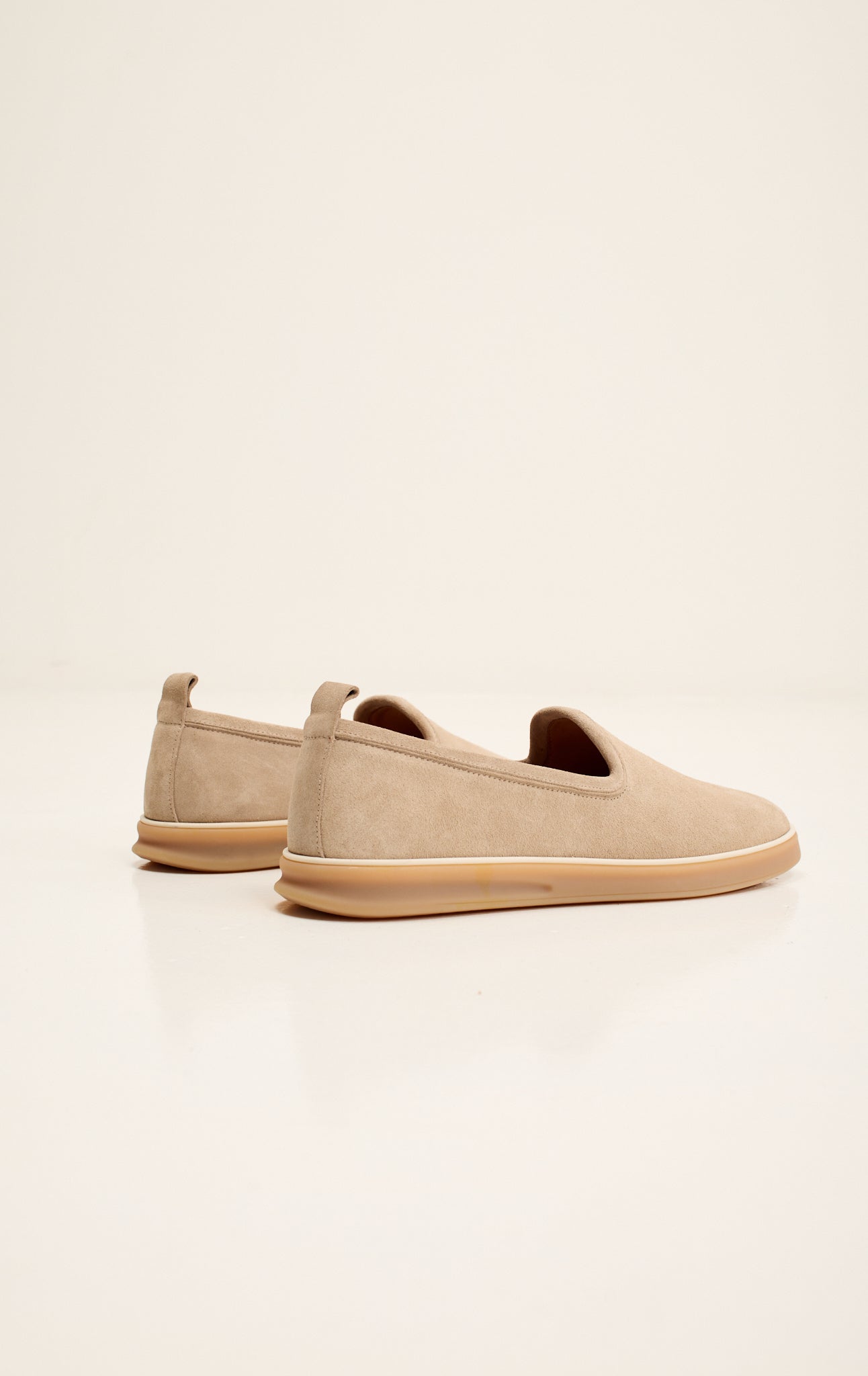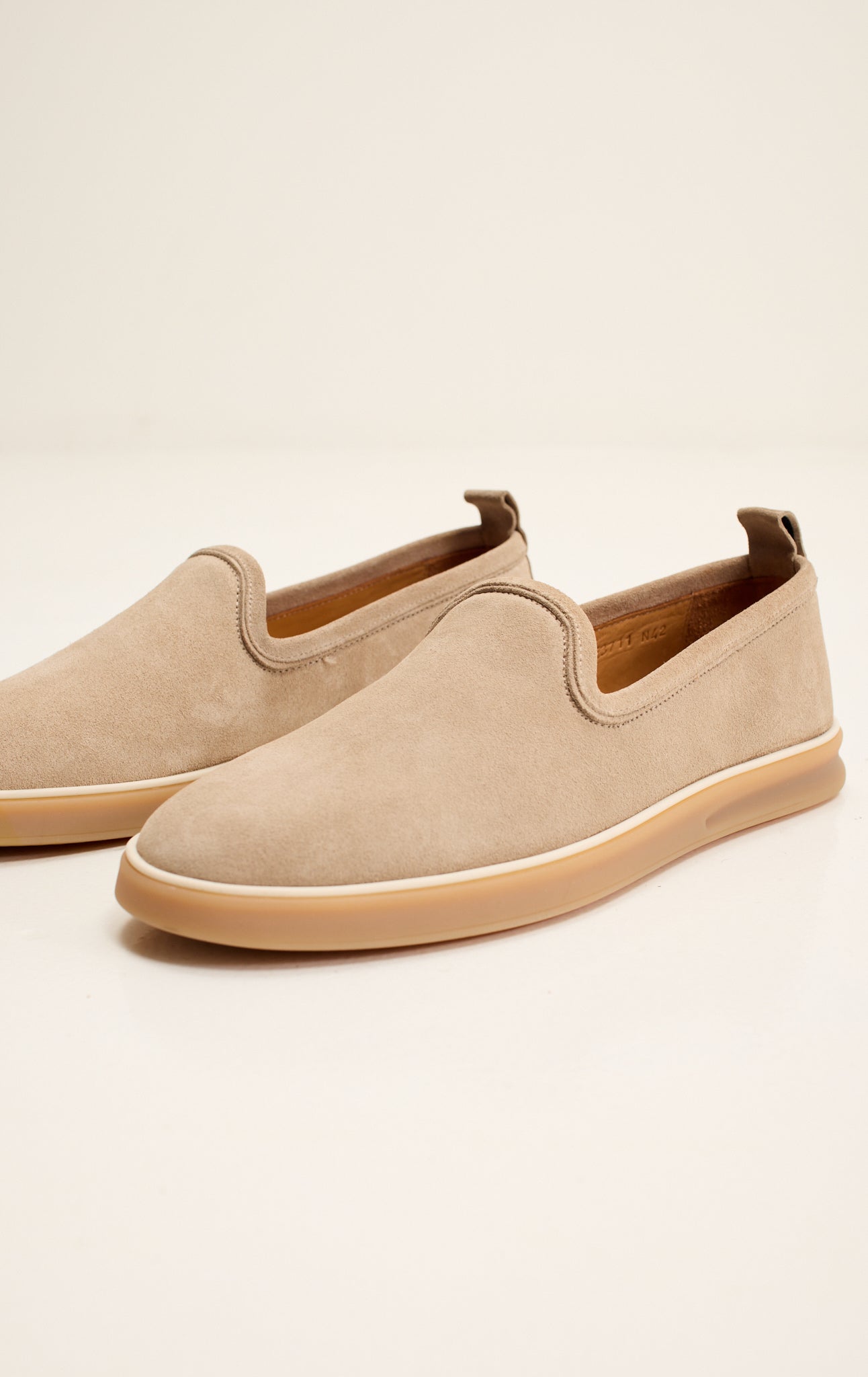 Antep Yemeni Nubuck Leather Shoes with Italian Rubber Soles - Beige Suede