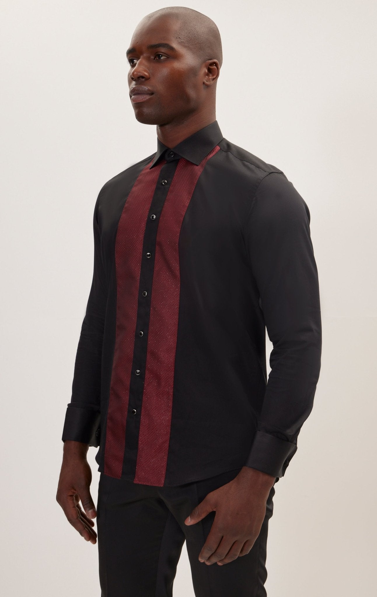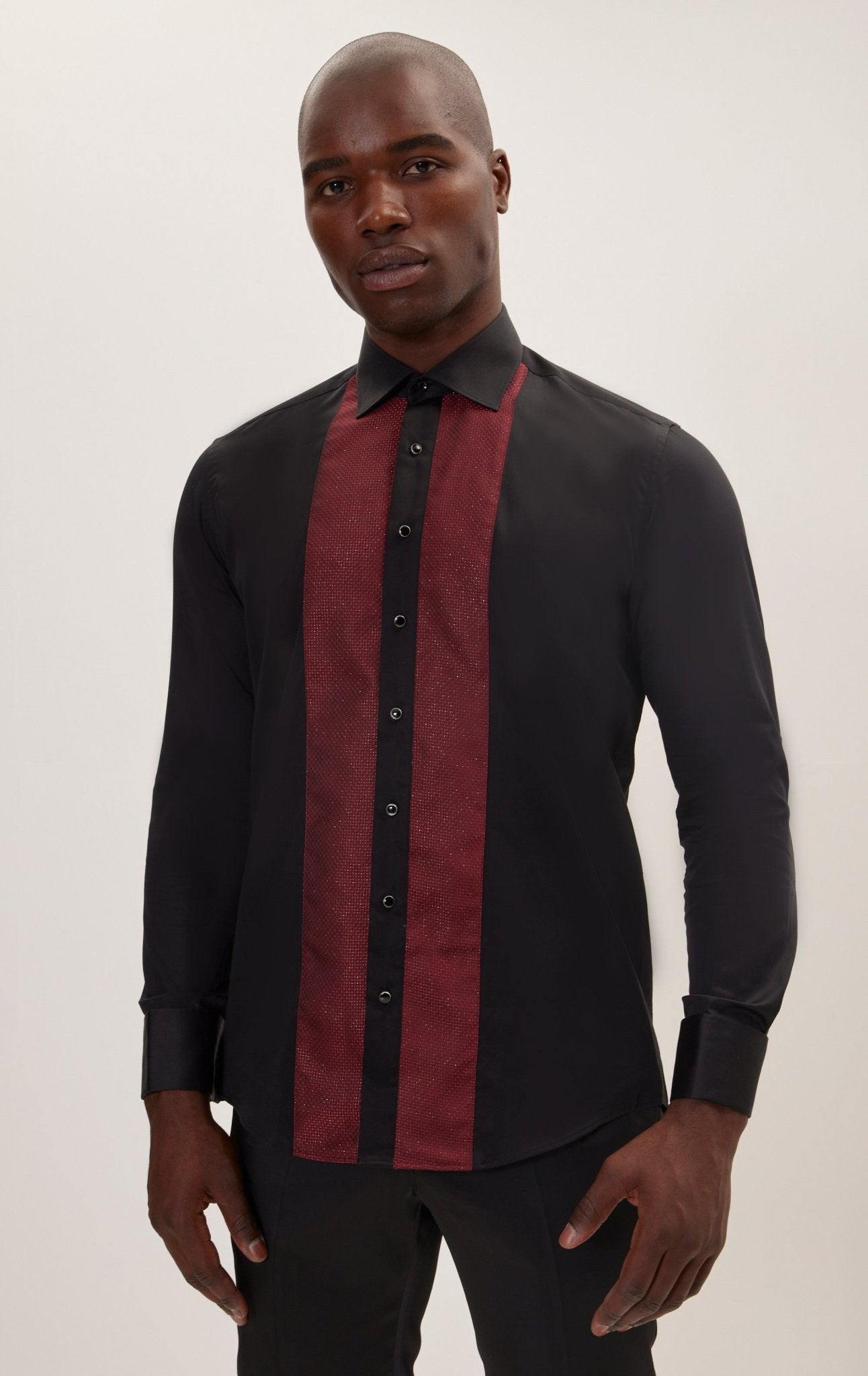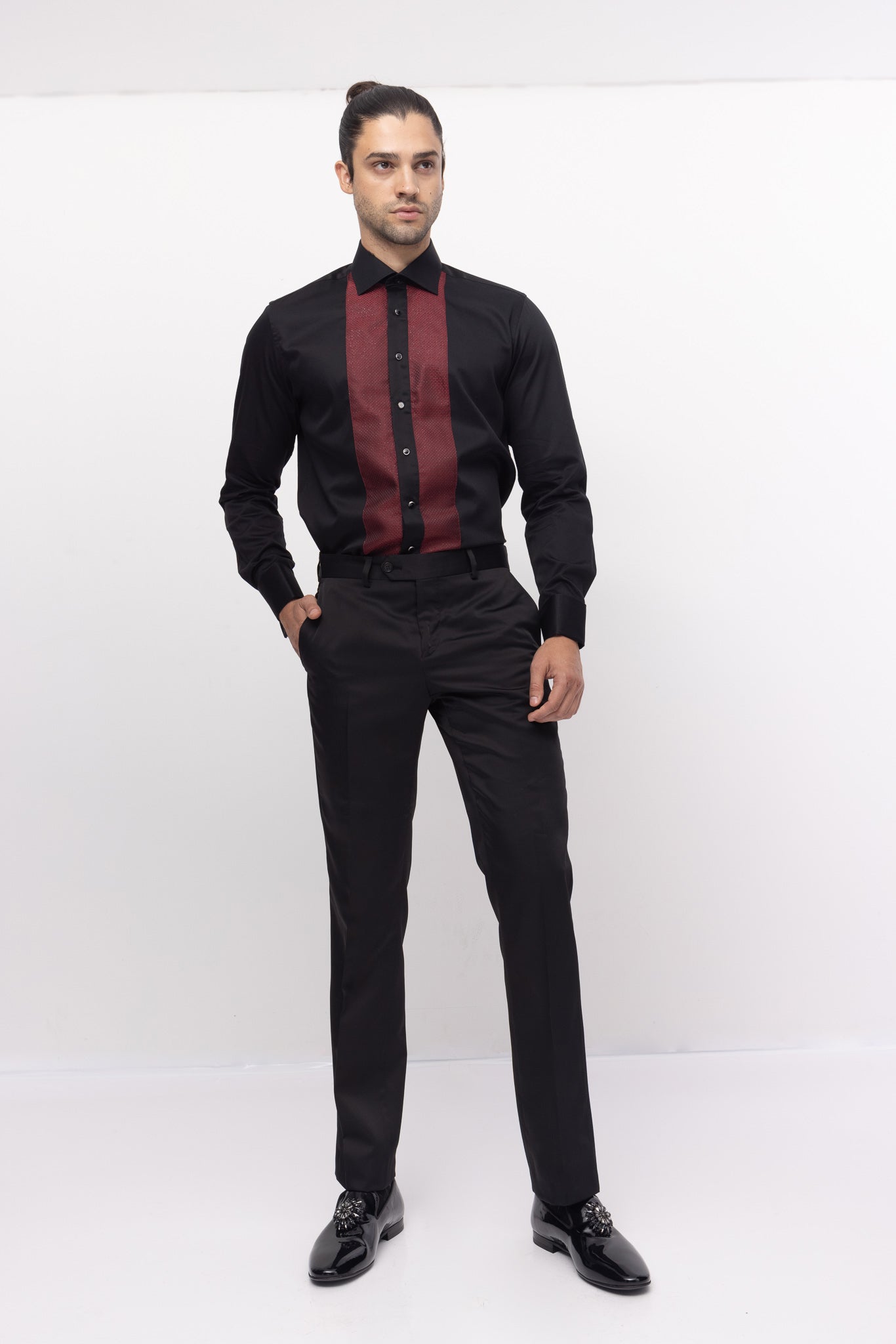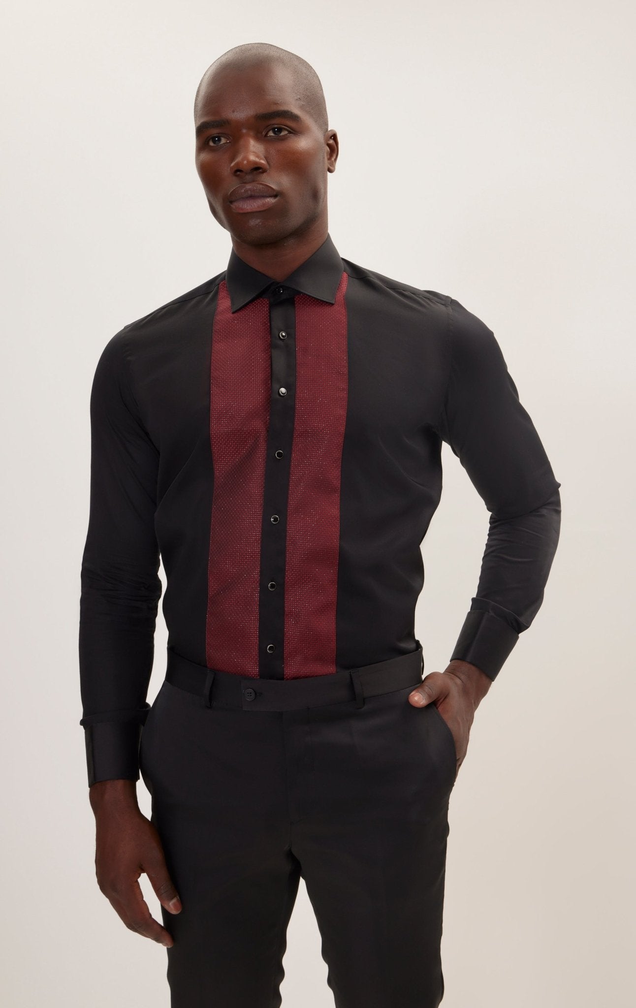 Рубашка с воротником из люрексовой отделки - ЧЕРНЫЙ КРАСНЫЙ