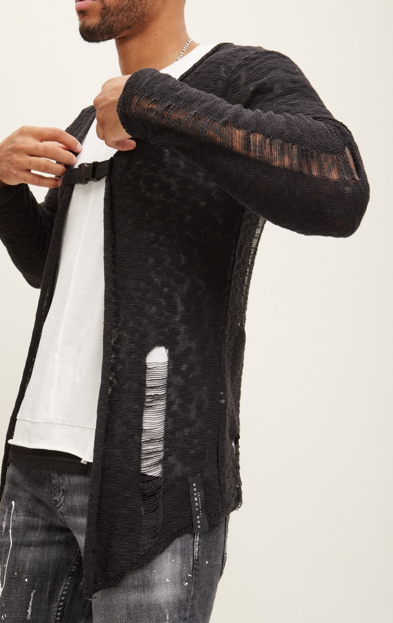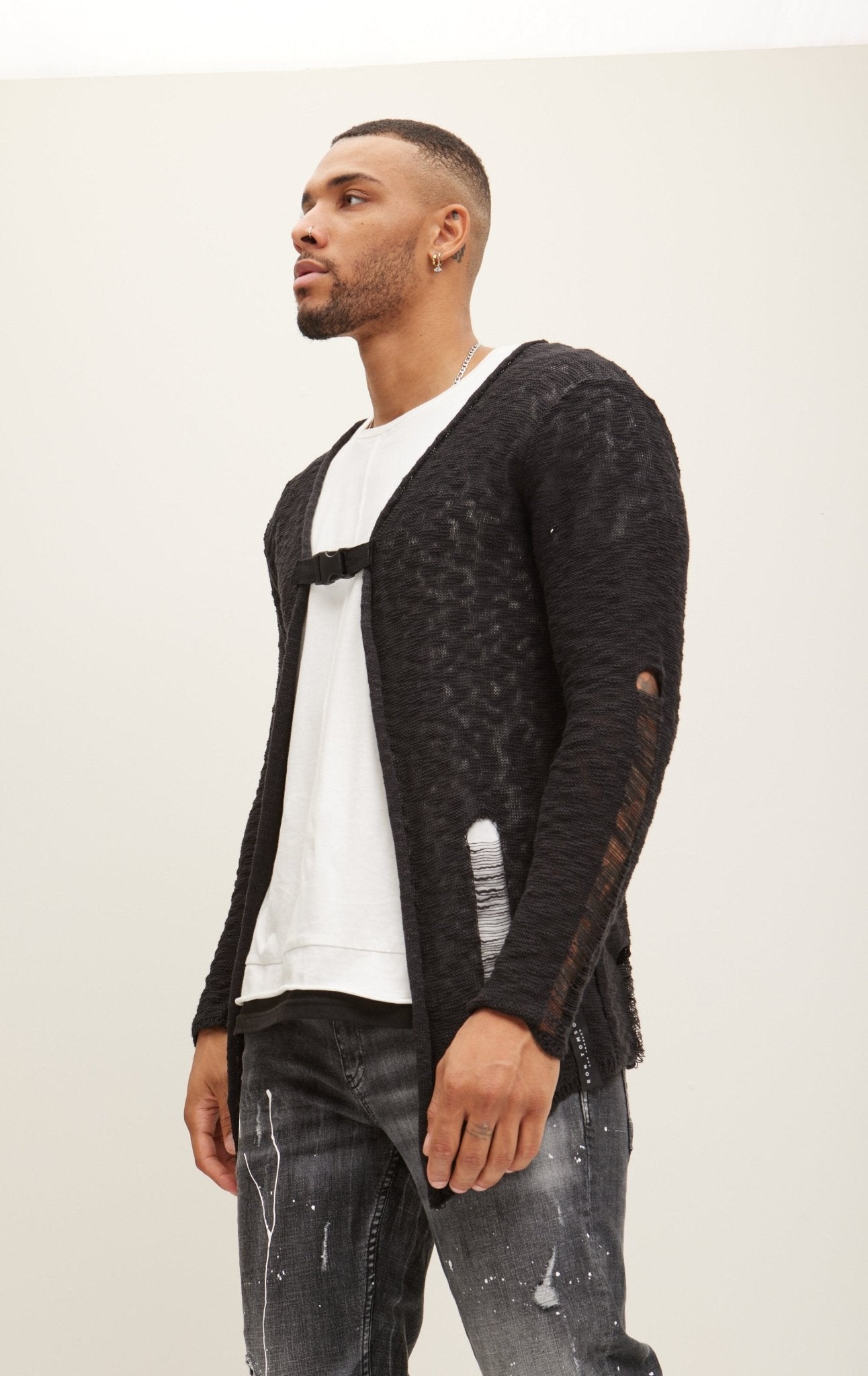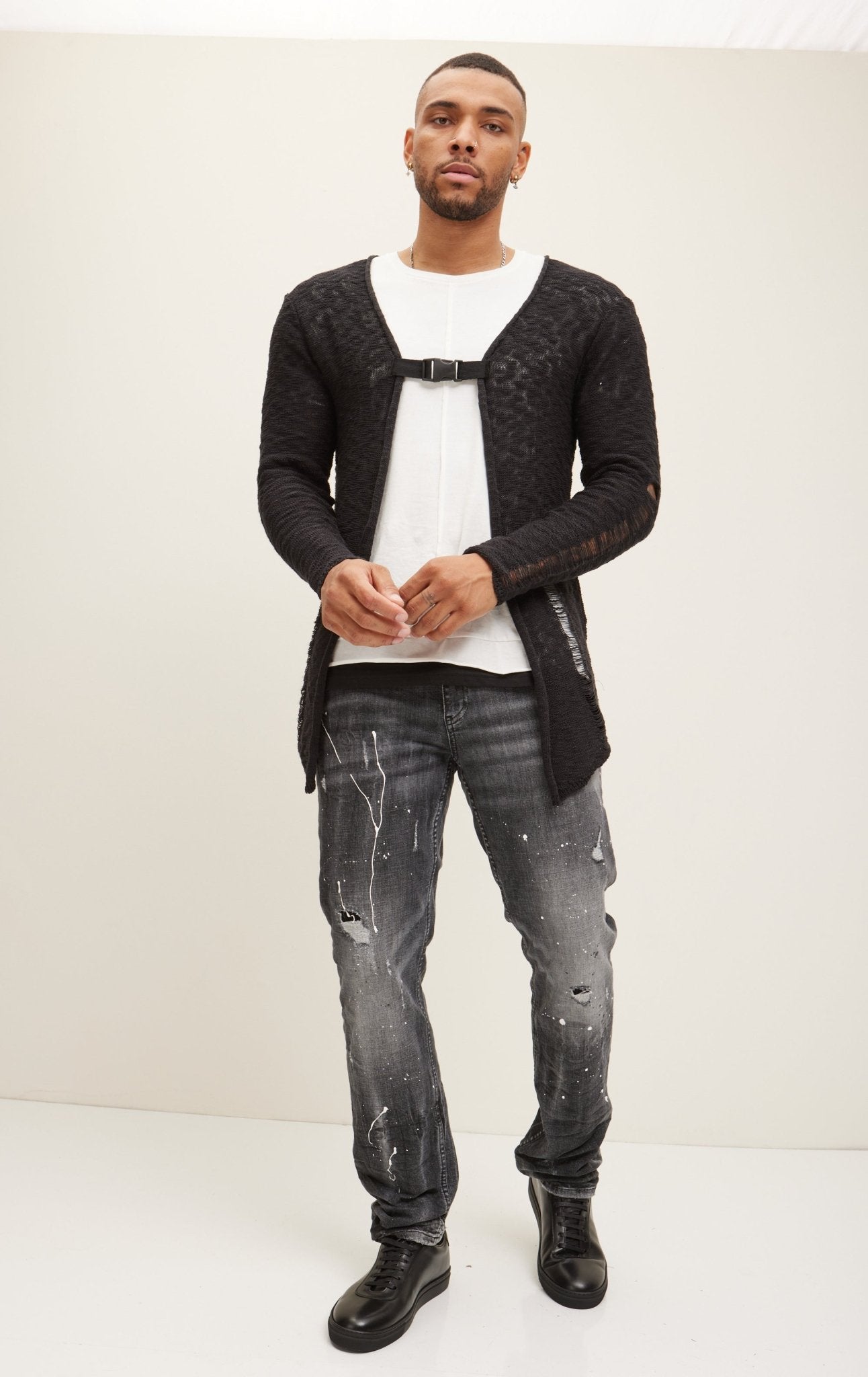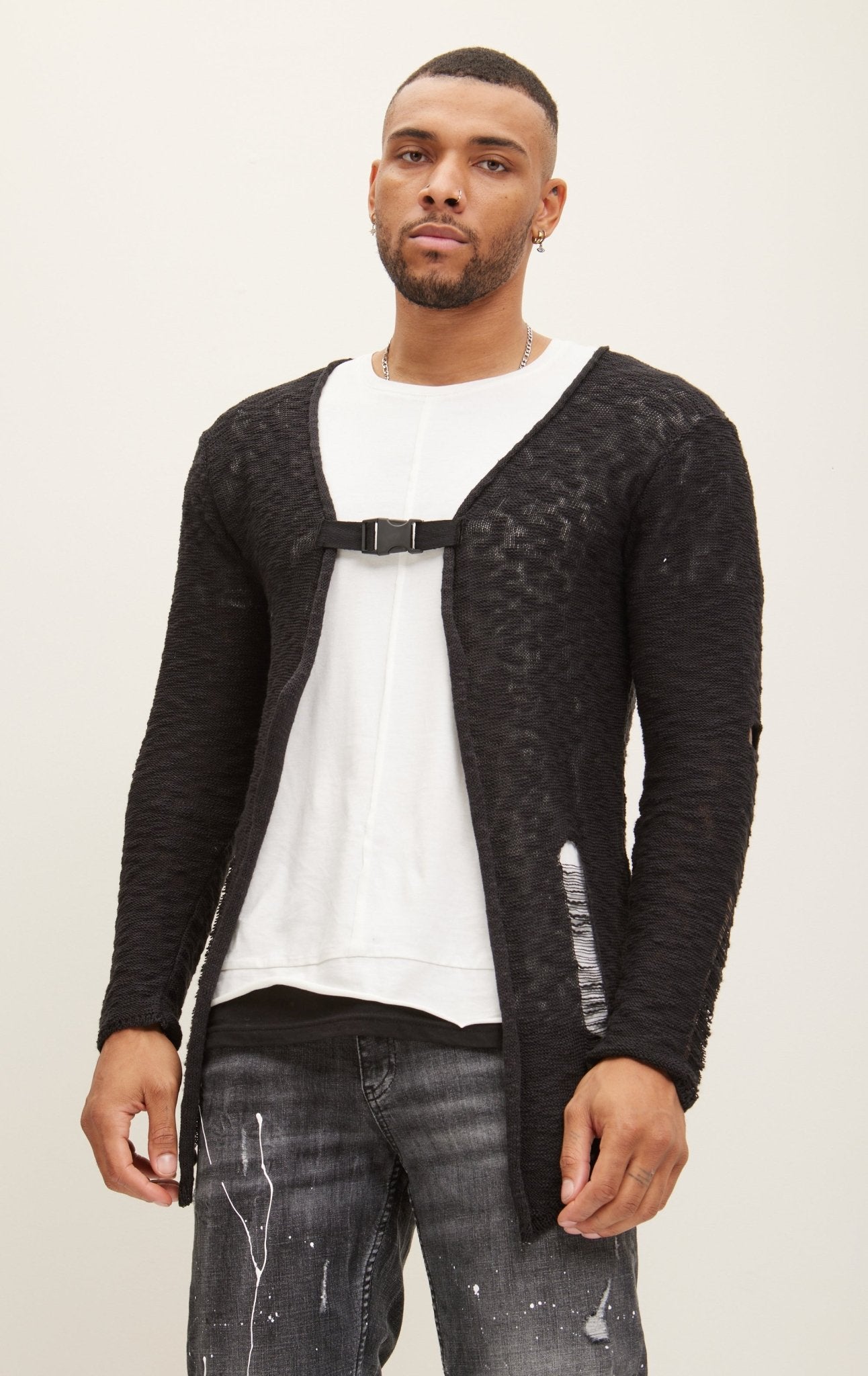 N° 9987 ДЛИННЫЙ КАРДИГАН С ПРЯЖКАМИ - ЧЕРНЫЙ БЕЛЫЙ