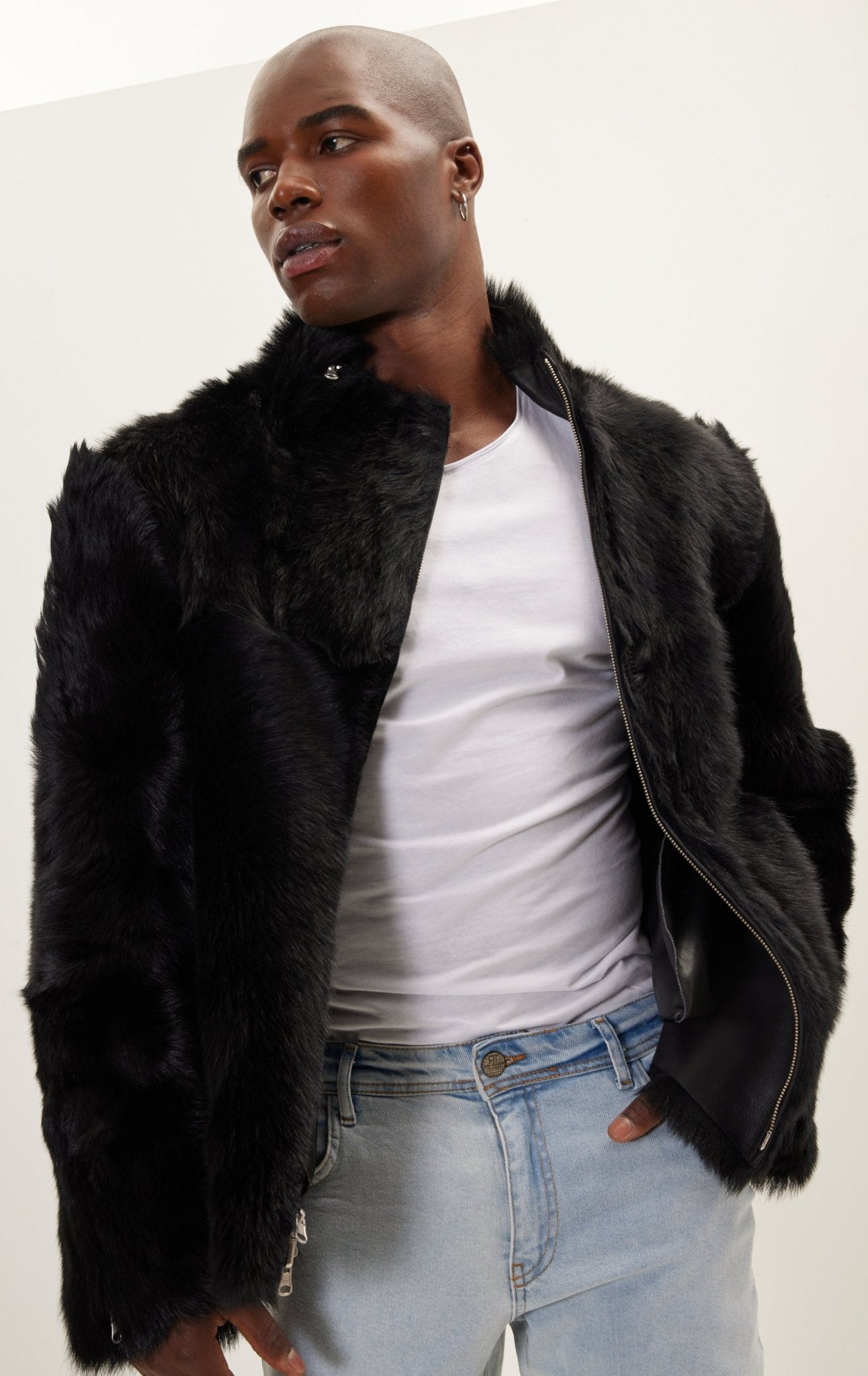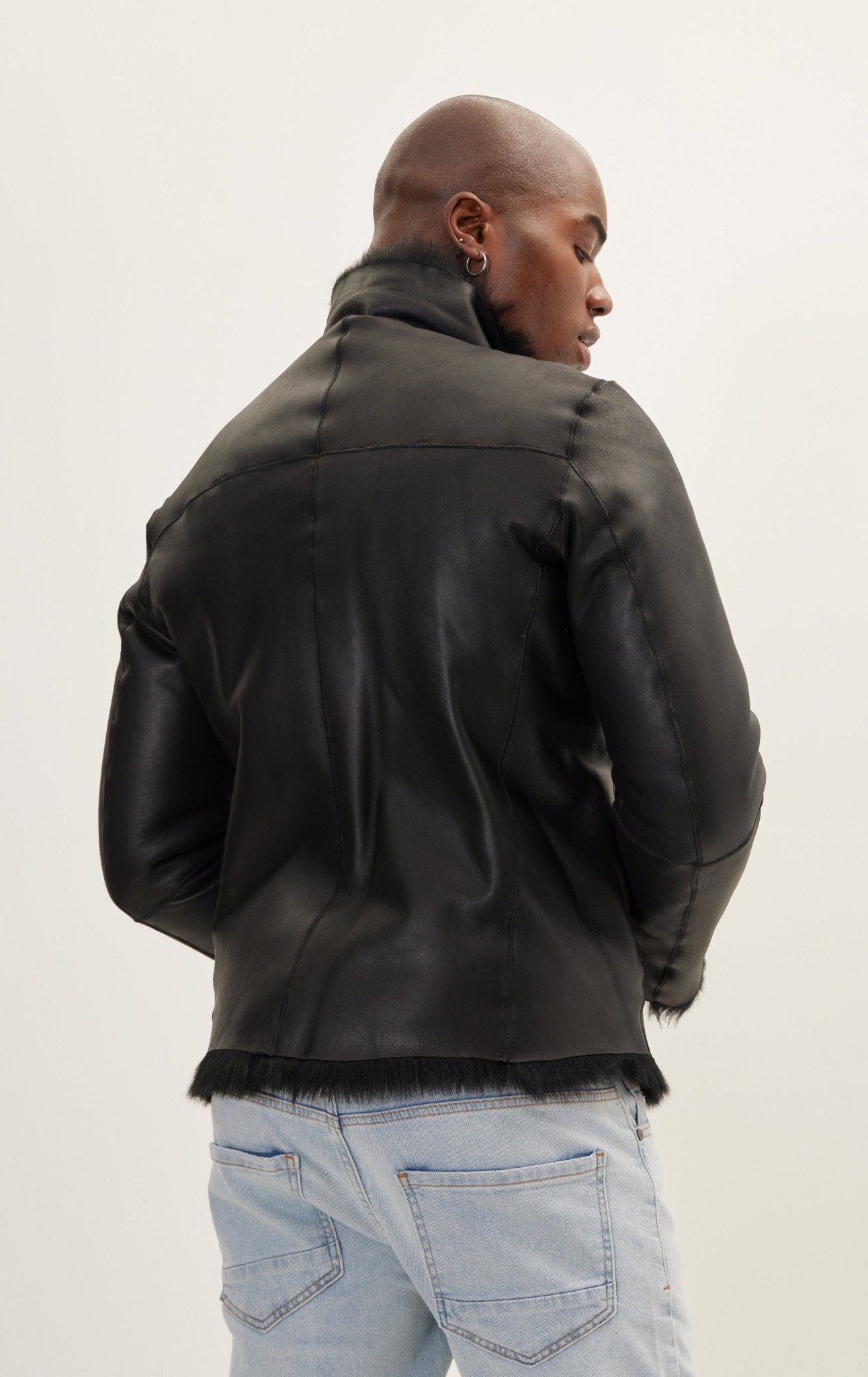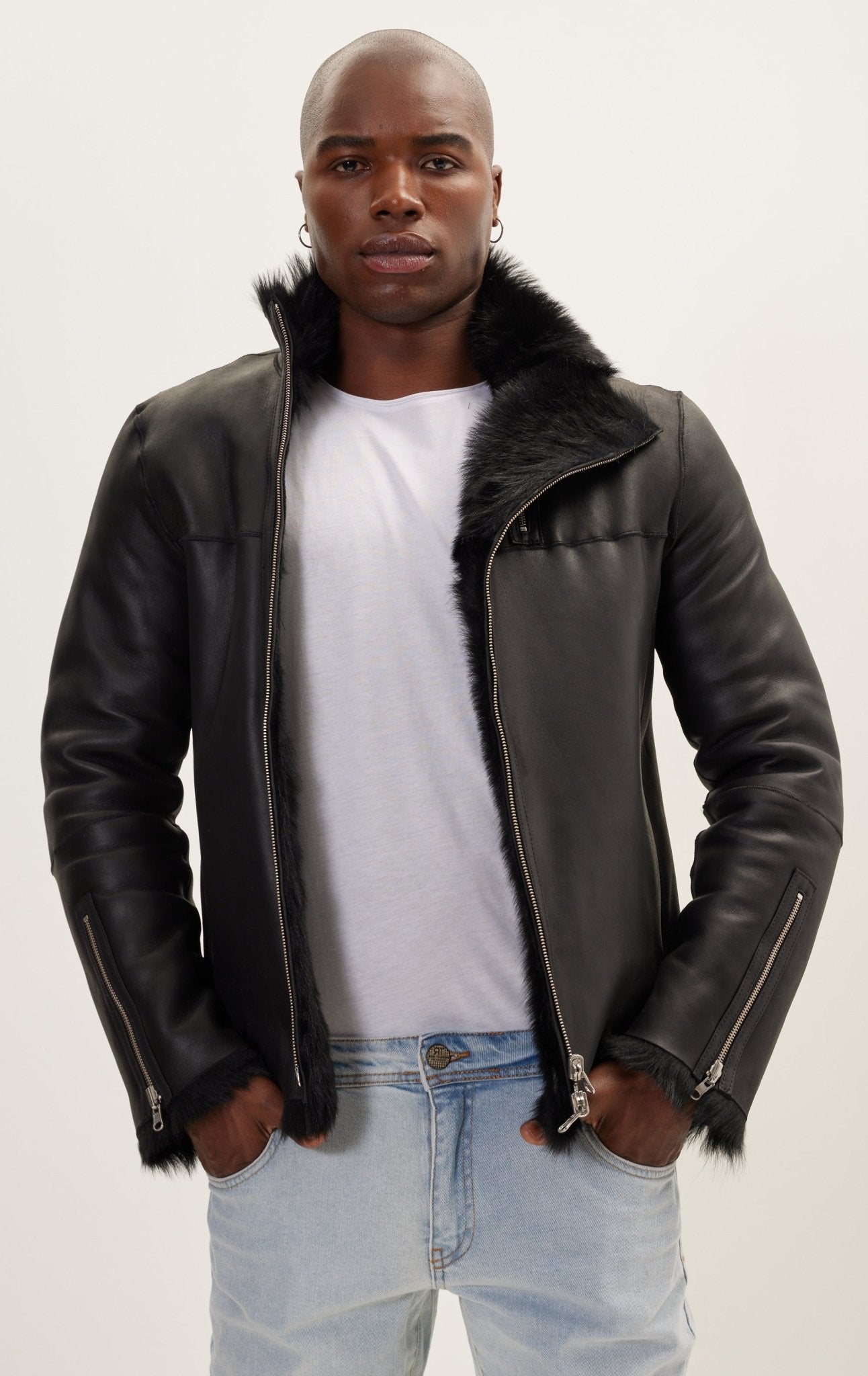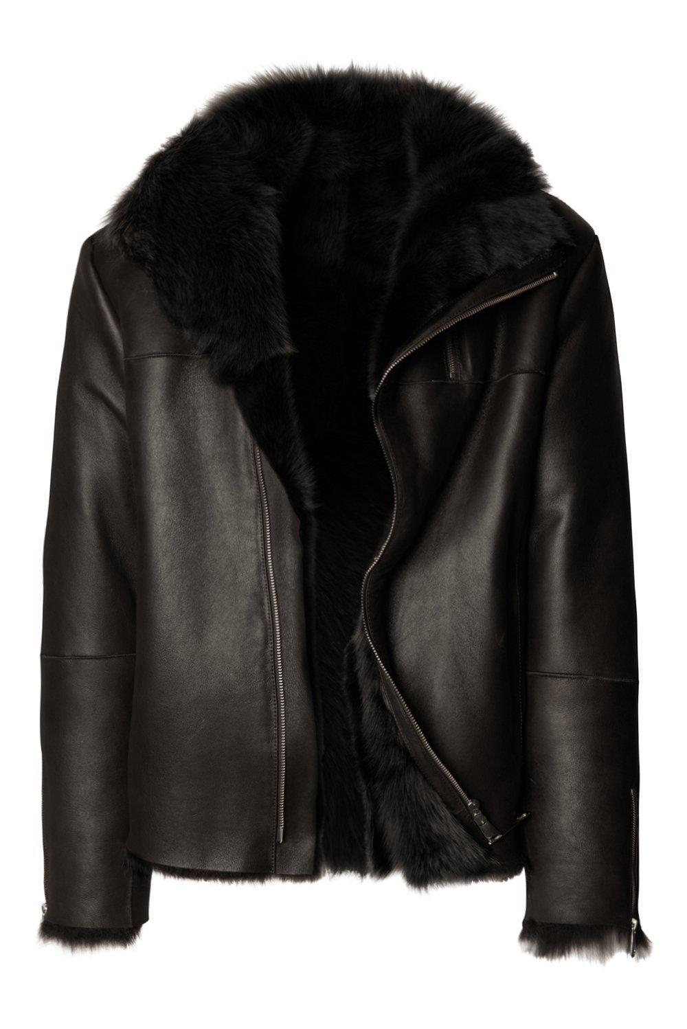 Наша сезонная куртка-авиатор из высококачественной итальянской кожи с короткими подкладками из овечьей шерсти и гладкими толстыми молниями. Носите его с повседневными брюками или джинсами такого же темного цвета.