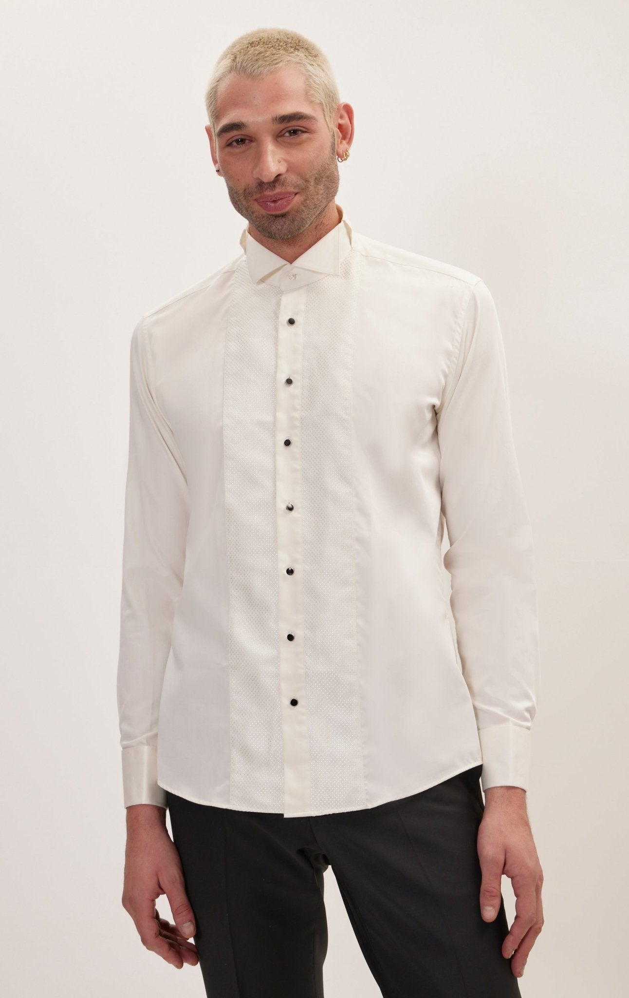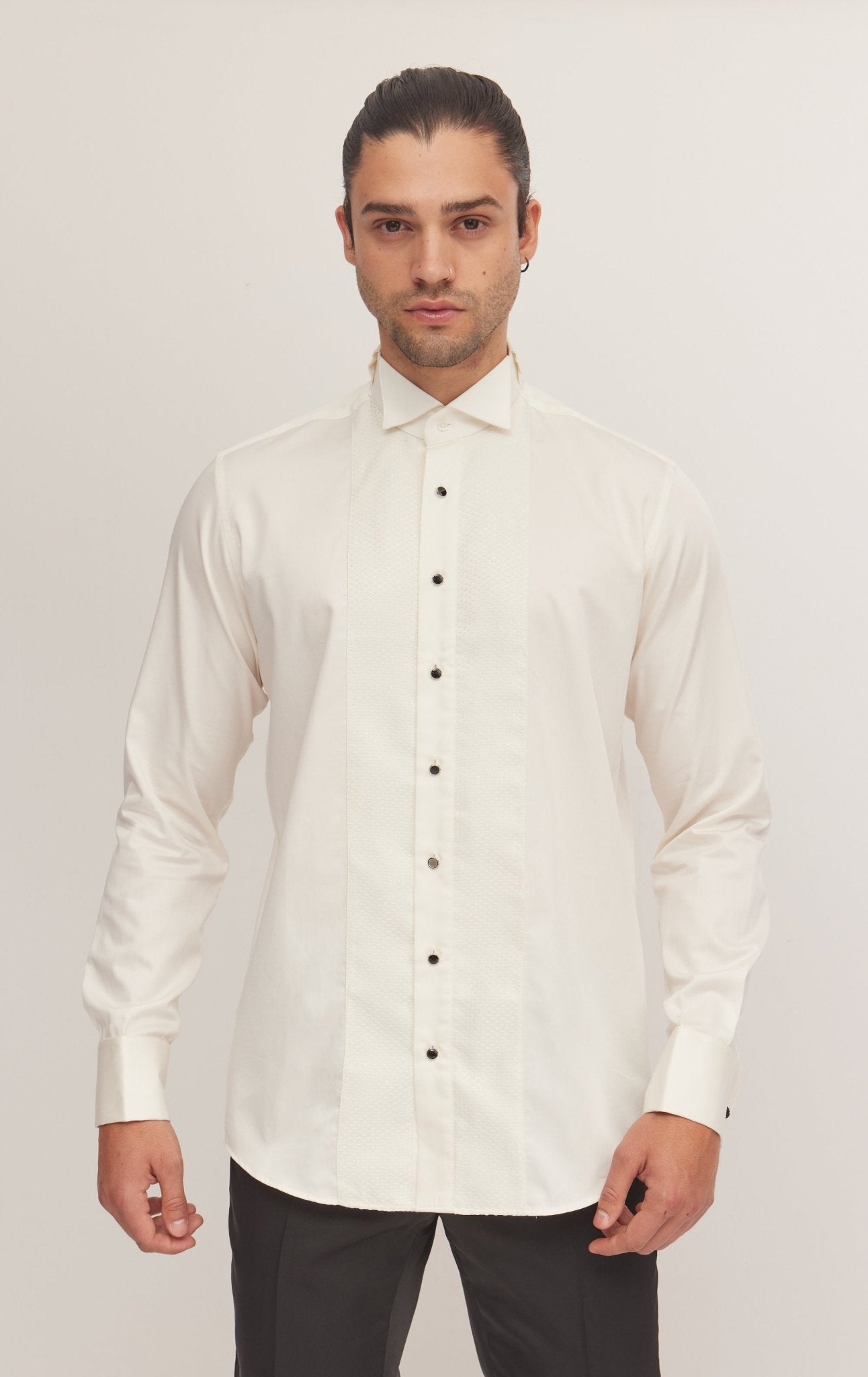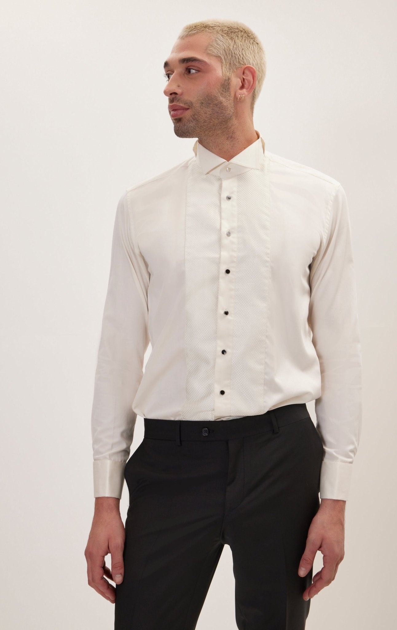 Приталенная рубашка в смокинге с вышивкой - бежевый бежевый