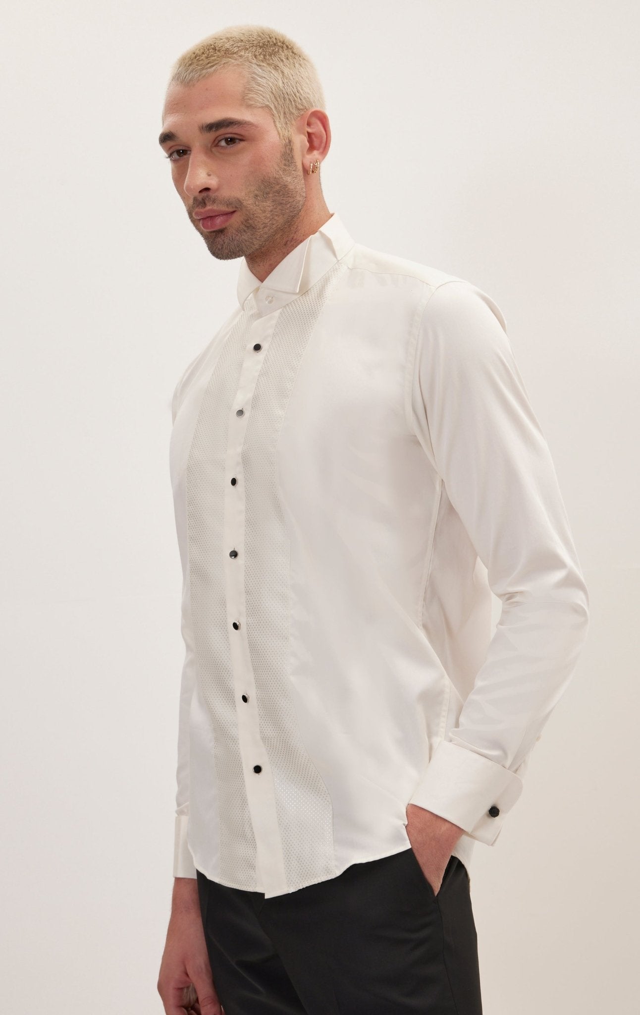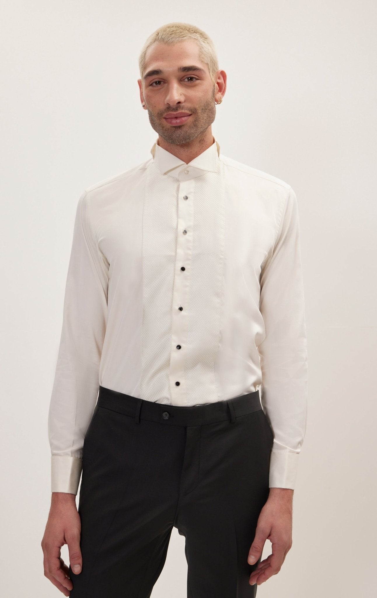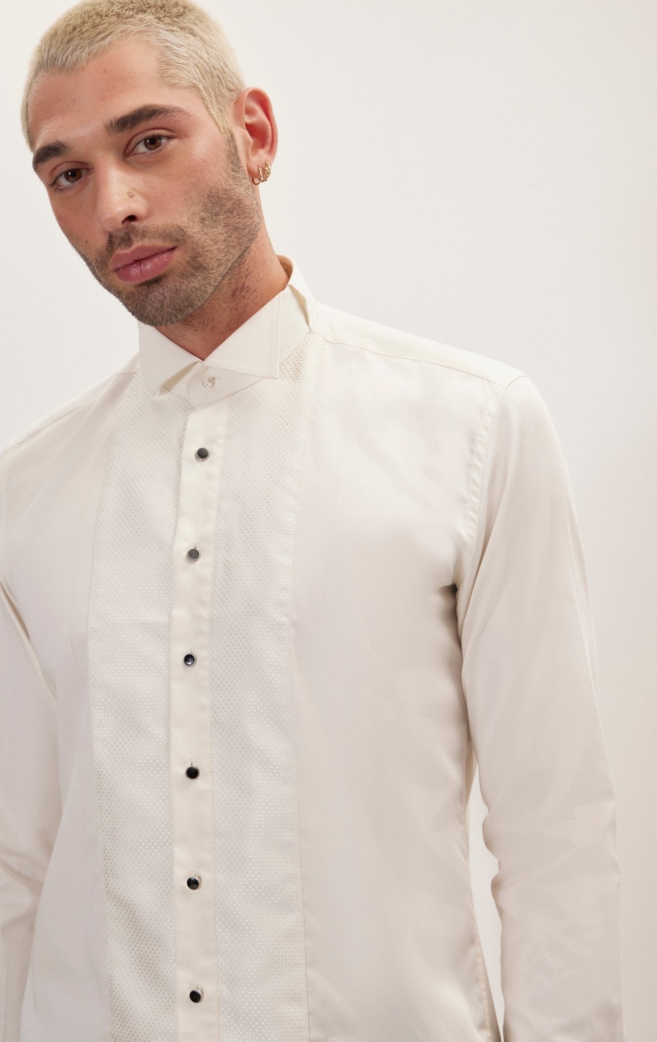 Приталенная рубашка в смокинге с вышивкой - бежевый бежевый