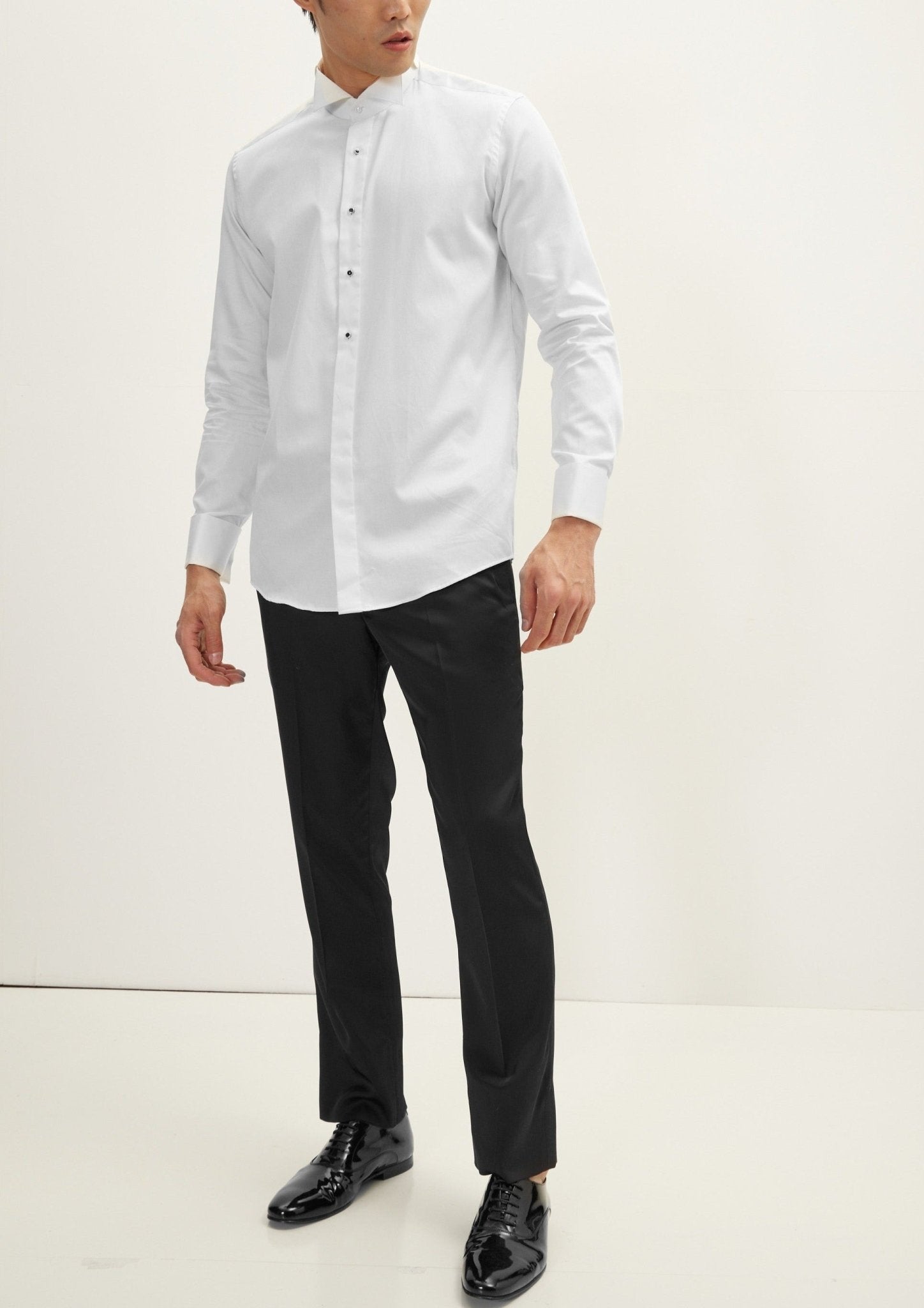 Приталенная рубашка из смокинга с длинным рукавом и приталенной застежкой на пуговицах - белый