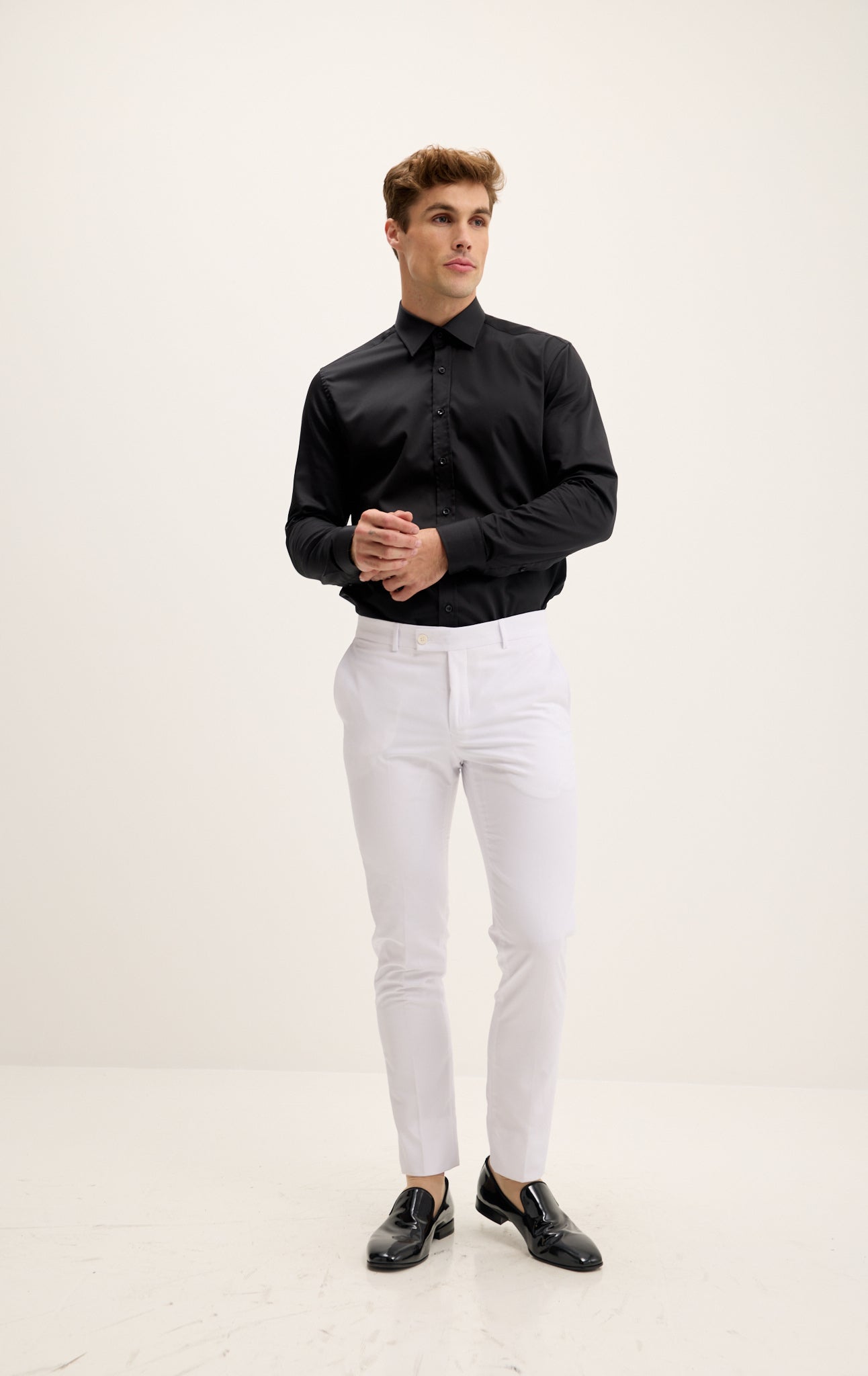 For the gentleman seeking timeless refinement and understated sophistication, look no further than these classic tuxedo pants, elegantly tailored without the traditional stripe.